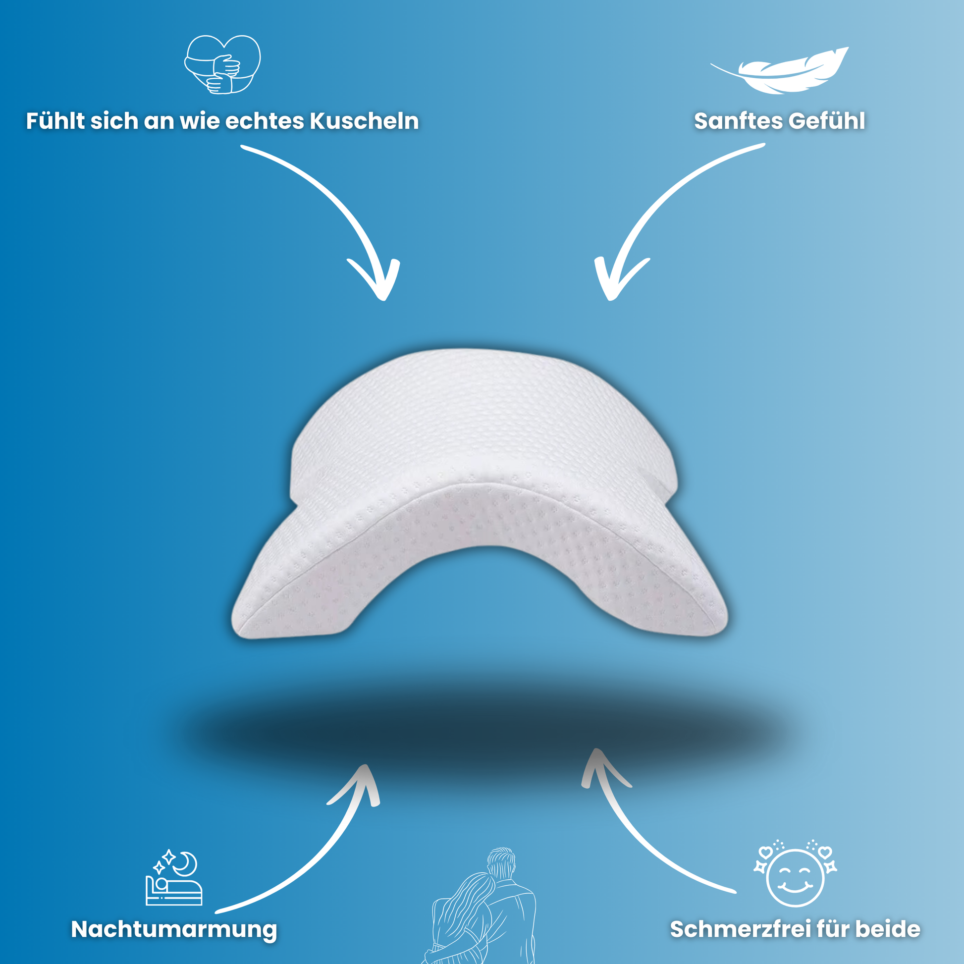 Jeder kennt es: Du liegst gemütlich im Bett, doch schon nach kurzer Zeit fängt dein Arm an zu schmerzen, während du versuchst, deinen Partner zu umarmen. Irgendwann endet es in einer unbequemen Stellung, die euch beide wach hält und den Schlaf stört. Und die Standard-Kissen auf dem Markt? Sie sind entweder zu flach oder viel zu groß, um beide Partner gleichzeitig zu unterstützen.