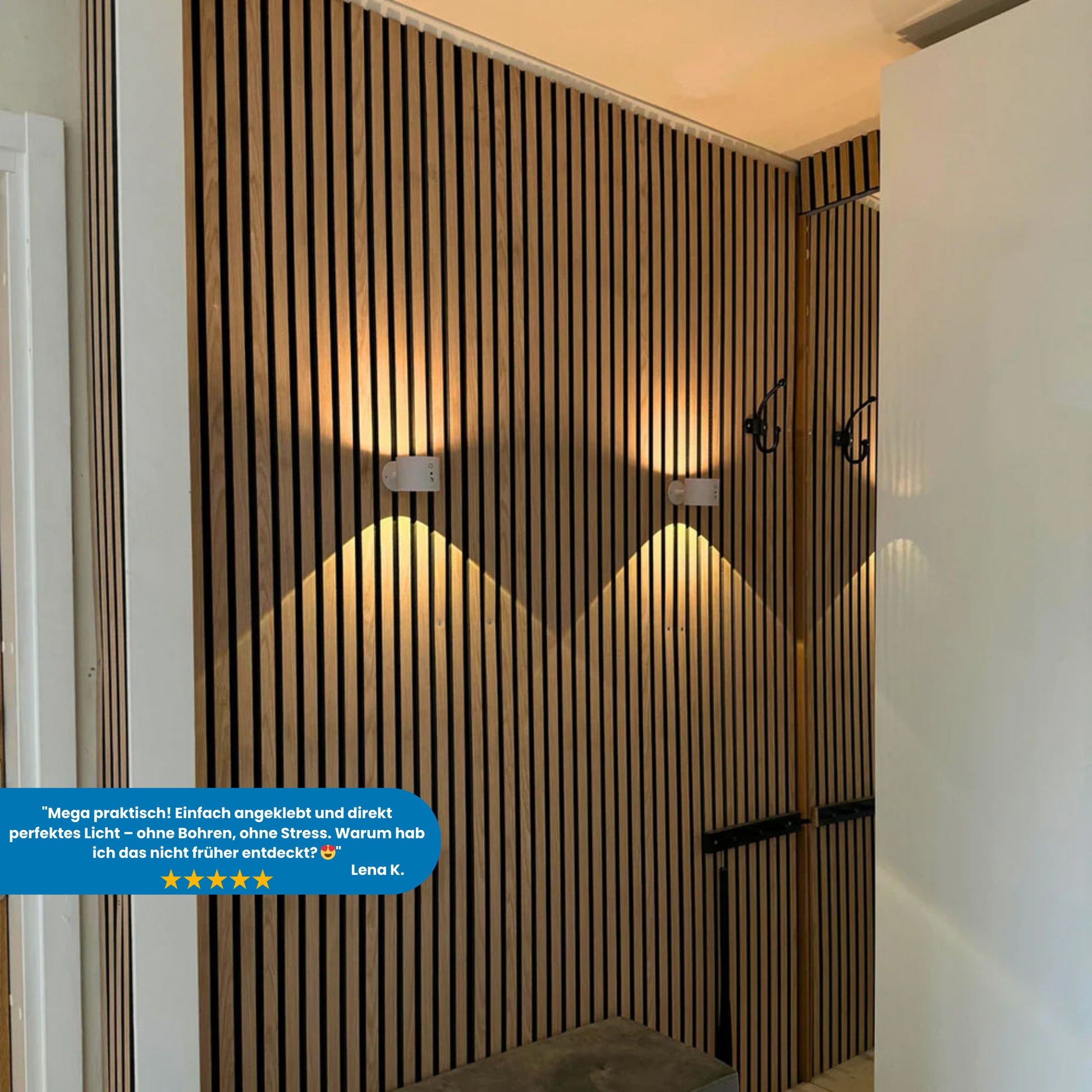 Erlebe mehr licht und das ohne Kopfschmerzen ! Klebe TwinGlow da hin wo du willst und genieße dein Komfort ohne Löcher in deinen Wänden !